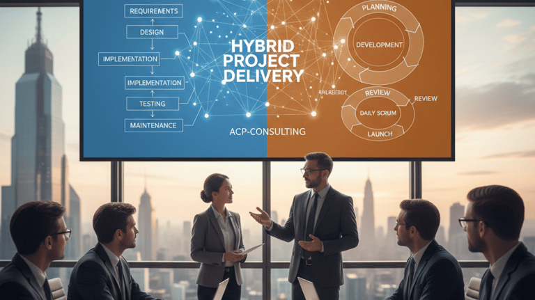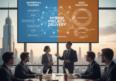 We recognize that one size does not fit all. Many enterprises require the structure of traditional governance with the speed of modern development. ACP-Consulting excels in Hybrid Project Management, blending the predictability of Waterfall planning with the flexibility of Agile execution. This is particularly effective for large-scale infrastructure changes or regulated industries where compliance and documentation are as critical as speed. We tailor the methodology to fit your organizational culture and the specific complexity of the task at hand.