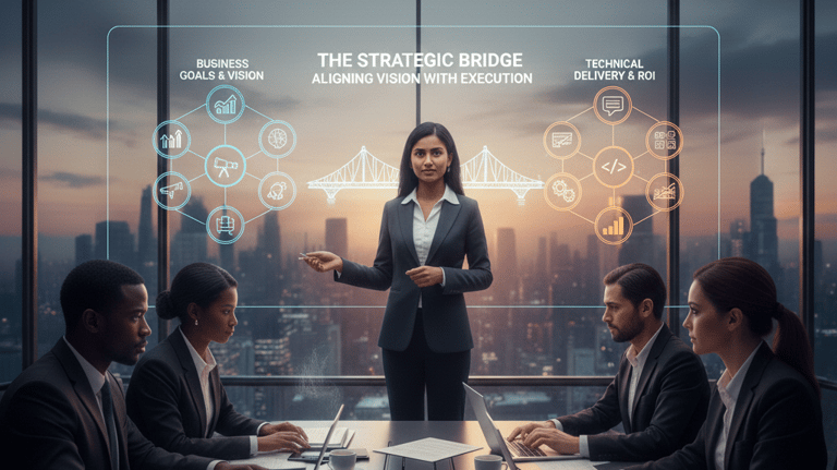 IT projects often fail not because of technology, but because of a disconnect between business goals and technical delivery. At ACP-Consulting, we act as the vital bridge. We ensure every sprint and milestone translates directly into ROI and competitive advantage. By aligning stakeholder expectations with realistic technical roadmaps, we turn high-level visions into functional reality. Our approach minimizes "scope creep" and maximizes value, ensuring that your IT investments serve your long-term business strategy, not just your immediate needs.